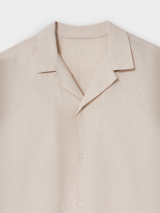 Комплект из двух предметов. Жакет прямого силуэта с воротником. По переду обработана застежка на пуговицы d=10mm и петли. Рукава короткие, втачные, слегка спущены. Нижние срезы изделия и рукавов обработаны швом в подгибку. Шорты прямого силуэта. Посадка средняя. Пояс цельнокроеный с эластичной тесьмой внутри. Шов сидения шорт распошит. На поясе пробиты петли, заправлен шнур из основного полотна. По переду имитация гульфика, обработаны карманы с наклонным входом от боковых швов. Низ шорт обработан швом в подгибку.