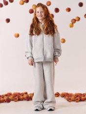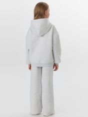 Толстовка свободного силуэта, с капюшоном._x000D_ Горловина округлой формы. Капюшон на подкладке из основного полотна. Шов притачивания закрыт х/б тесьмой_x000D_ Рукава втачные длинные, плечо спущено. По низу рукава отрезная манжета из рибаны. Центральная застежка на тесьму молнию. По переду накладные карманы кенгуру._x000D_ Пояс отрезной из рибаны._x000D_ Брюки свободные. Пояс цельнокроеный с эластичной тесьмой внутри 30RV. С внешней стороны пояса пробиты петли и втянут шнур 8PXC-2. Низ изделия швом в подгибку_x000D_