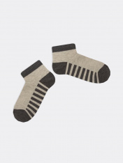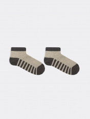 Носки короткие детские из высококачественного хлопка с принтом полосок на следу. Натуральные волокна отлично пропускают воздух и впитывают влагу, дарят ощущение комфорта в течение дня. Благодаря небольшому количеству эластана в составе, удобно сидятна ножке и не сползают, хорошо тянутся и легко надеваются. Пятка и мысок дополнительно укреплены для защиты от протирания. Резинка мягко, но надежно удерживает носки, не оставляя на коже следов. В ассортименте Mark Formelle можно выбрать самые разнообразные дизайны и расцветки: однотонные зеленые, желтые, синие или серые детские носки подойдут и для мальчика, и для девочек, найдутся модели в полоску, с оригинальными авторскими рисунками, орнаментами, а также базовые детские носки белые и черные. Маленьким модникам они точно понравятся!