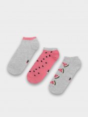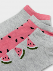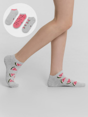 Короткие детские носки мультипак (3 пары) из высококачественного хлопка с рисунком в виде арбузиков. Натуральные волокна отлично пропускают воздух и впитывают влагу, дарят ощущение комфорта в течение дня. Благодаря небольшому количеству эластана в составе, короткие носки удобно сидят и не сползают, хорошо тянутся и легко надеваются. Пятка и мысок дополнительно укреплены для защиты от протирания. Резинка мягко, но надежно удерживает носки, не оставляя на коже следов. В ассортименте Mark Formelleможно выбрать самые разнообразные дизайны и расцветки: однотонные зеленые, желтые, синие или серые детские носки подойдут и для мальчика, и для девочек, найдутся модели в полоску, с оригинальными авторскими рисунками, орнаментами, а также базовые носки белые и черные детские. Маленьким модникам точно понравятся!