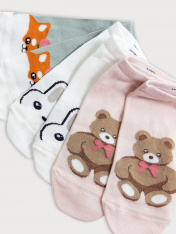 рис.2785 Мультипак из гладких укороченных детских носков с рисунком в виде животных. Составляющие: 406A-2786, 406A-2787, 406A-2788