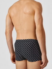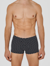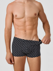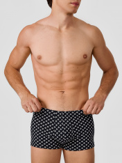 Черные трусы-боксеры мужские с узором — это стильное и комфортное белье для повседневной носки. Модель выполнена из мягкого дышащего трикотажа, который нежно облегает тело, не сковывая движений. Эластичный пояс мягко фиксирует трусы на талии, не оставляя следов, а плоские швы исключают натирание даже при активном образе жизни.<br>_x000D_ <br>_x000D_ Узорчатый дизайн добавляет образу современности, сохраняя лаконичность. Спинка и передняя часть изделия продуманы для максимального удобства: цельнокроеная конструкция и аккуратная обработка краев обеспечивают долговечность и сохранение формы после стирок.<br>_x000D_ <br>_x000D_ Эти трусы-боксеры подходят для спорта, отдыха или сна. Если вы ищете, где купить мужское белье, которое сочетает качественные материалы, удобный крой и стильный дизайн, эта модель станет отличным выбором._x000D_