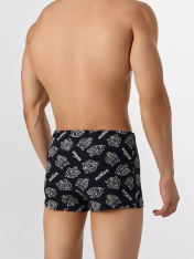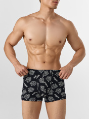 Черные трусы-боксеры мужские с узором — это эталон комфорта и качества. Модель выполнена из мягкого дышащего материала на основе хлопка с добавлением эластана, что обеспечивает идеальное облегание и свободу движений. Эластичный широкий пояс мягко сидит на талии, не оставляя следов, а плоские швы исключают натирание.<br>_x000D_ <br>_x000D_ Стильный узор добавляет образу современности, а продуманный крой с ластовицей и анатомической планкой гарантирует удобство в течение всего дня. Состав сохраняет форму и цвет даже после множества стирок._x000D_ Эти трусы-боксеры подходят для спорта, отдыха или повседневной носки. Если вы ищете, где купить мужское белье, которое сочетает натуральные материалы, безупречную посадку и долговечность, этот вариант станет отличнымвыбором.