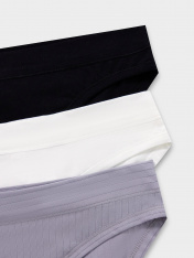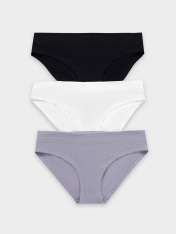 Базовый набор женских трусиков слипов (3 шт.) разных цветов из высококачественного хлопка. Невероятно удобные, благодаря своей невысокой посадке, они пользуются заслуженной любовью покупательниц. Изготовлены из натурального материала — дышащего, мягкого, гипоаллергенного. Помимо длительного и полного ощущения комфорта трусики отличаются отличным качеством. Продуманная анатомическая конструкция, плоские швы и деликатные резиночки делают эту модель подходящей для занятий спортом. Пригодятся слипыи будущим мамам: низкая талия трусиков удобно помещается под растущим животиком и абсолютно не давит. Рекомендуем!