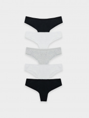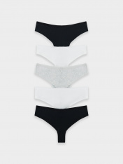 Мультипак (5 штук) хлопковых трусиков-бразилиана из натурального, гипоаллергенного, дышащего полотна. Линия талии занижена. На верхнем срезе – тонкая эластичная тесьма, по ножкам – шов вподгибку. Почти не заметны под одеждой!