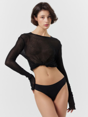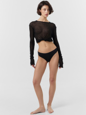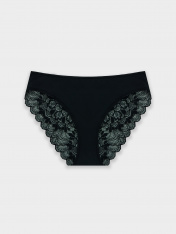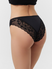 Комфортные слип-бикини из невесомой микрофибры и ажурного эластичного кружева на задней детали. Посадка по талии слегка занижена. На верхнем срезе и по ножкам – эластичная тесьма. Стильные трусики!
