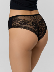 Качественные и комфортные трусики-шорты из трикотажного полотна. Линия талии классическая. На верхнем срезе трусиков и по ножкам – тонкая эластичная тесьма. Задняя деталь выполнена из элегантного полупрозрачного кружева. Комфортный вариант на каждыйдень!