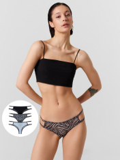 Набор женских трусиков бразилиана с классической линией талии – идеальный выбор для тех, кто ценит комфорт и стиль. Они выполнены из ультралегкого полупрозрачного сетчатого материала, который обеспечивает нежность и легкость при носке. Срезы обработаны тесьмой, что добавляет изысканности и аккуратности. Изюминкой моделей являются интересные вырезы в боковых частях, которые придают трусикам оригинальность и привлекательность. Удобная посадка и эластичный материал обеспечивают отличное прилеганиек телу, не пережимая и не стесняя движений. Эти трусики подойдут для ежедневного ношения, даря комфорт и уверенность в течение всего дня. Если вам наскучили привычные женские трусики и вы хотите разнообразия, порадуйте себя чем-то необычным и нежным. Отличный выбор для тех, кто хочет добавить в свой гардероб что-то особенное. В наборе: 3 шт.