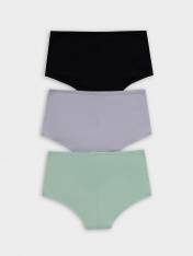 Набор из трех женских трусов-шорт — это практичное решение для повседневного комфорта и разнообразия в гардеробе. Каждая модель классического кроя обеспечивает удобную посадку и полную свободу движений в течение всего дня._x000D_ Изделия выполнены из высококачественного материала на основе хлопка с добавлением эластана. Такое сочетание обеспечивает отличную воздухопроницаемость, бережно облегает контуры тела и предотвращает натирание. Мягкая фактура приятна к коже, даря ощущение уюта с самого утра.<br>_x000D_ <br>_x000D_ Разнообразие расцветок внутри набора позволяет подобрать вариант под любое настроение и случай — от нейтральных однотонных оттенков до выразительных принтов. Этот набор станет надежной основой вашего гардероба, сочетая в себе практичность, заботу о комфорте и стильное исполнение. <br>_x000D_ <br>_x000D_ Универсальный размерный ряд обеспечивает идеальную посадку для разных типов фигур.