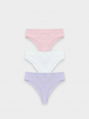 Набор женских трусиков-бразилиана, выполненный из рибаны, станет прекрасным дополнением вашего гардероба. Рибана – это эластичный трикотажный материал с мелким рубчиком, который обеспечивает отличное прилегание к телу и комфорт при носке. Средняя линия талии гарантирует удобную посадку. А хлопковая подкладка ластовицы добавляет особый комфорт и гигиеничность, что делает эти трусики идеальными для повседневного использования. Такой набор сочетает в себе качество, комфорт и стиль, позволяя вам чувствовать себя уверенно и удобно в любой ситуации. Отличный выбор для тех, кто ценит высокое качество и комфорт в белье! В наборе: 3 шт.
