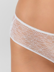 Белые кружевные трусы-шорты — это элегантное и чувственное белье, которое подчеркнет вашу женственность. Модель с средней линией талии мягко облегает фигуру, обеспечивая комфорт и уверенность. Передняя и задняя части выполнены из нежного кружевного материала, который выглядит изысканно и воздушно.<br>_x000D_ <br>_x000D_ Подкладка в области ластовицы из натурального хлопка гарантирует гигиеничность и нежность к коже. Верхний срез обработан эластичной тесьмой, которая надежно фиксирует трусики, не врезаясь ине создавая дискомфорта. Нижние срезы передней части укреплены мягкой жилкой для сохранения формы и долговечности.<br>_x000D_ <br>_x000D_ Эти трусы-шорты идеально подходят для особых случаев или повседневной носки, оставаясь незаметными под одеждой. Если вы ищете, где купить кружевные трусы, которые сочетают красоту, качество и удобство, эта модель станет прекрасным выбором._x000D_
