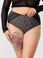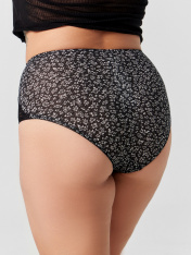 Трусы женские макси из высококачественного хлопка. Передняя деталь декорирована кружевом. Кружево симметрично от талии по диагонали переходит на заднюю деталь. Трусы без боковых швов. Задняя деталь из рибаны. Высокая посадка по талии, широкие боковые части и полностью закрытые ягодицы – залог комфортной посадки на фигуре. Полупрозрачные кружевные вставки добавляют этим макси шарма. Модель отлично подойдет дамам с пышными формами plus-size. Очень удобные и комфортные. Отличный вариант на каждый день!