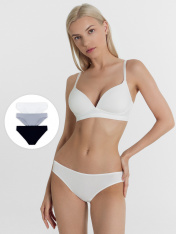 Трусы женские слипы мультипак (3 шт.) — популярная модель женского белья. Мягкие и комфортные. На задней детали в верхней части шва оформлена сборка с эластичной тесьмой с изнаночной стороны. Невероятно удобные, благодаря своей заниженной посадке, они пользуются заслуженной любовью покупательниц. Трусы изготовлены из высококачественного натурального хлопка, дышащего, мягкого, гипоаллергенного - идеального для повседневной носки. Помимо длительного и полного ощущения комфорта, материал отличается долговечностью и сохраняет вид даже после многочисленных стирок. Цвет трусиков останется ярким, рисунок не поблекнет и долго будет радовать вас. Продуманная анатомическая конструкция, плоские швы и деликатные резиночки делают эту модель подходящей для занятий спортом. Рекомендуем!