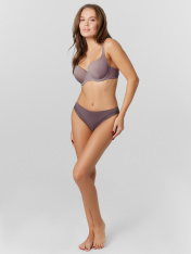 Трусы женские со средней посадкой силуэта «слип». Передняя центральная деталь из микрофибры, боковые передние детали из эластичной сетки, со сгибом по ножкам. Подкладка ластовицы из кулирного полотна отлетная по переднему краю. _x000D_ Задняя деталь трусов из эластичной сетки. Нижние срезы задней детали обработаны швом вподгибку с эластичной тесьмой 6 мм (жилка тканая внутри._x000D_ Верхний срез трусов обработан швом вподгибку с эластичной тесьмой внутри.