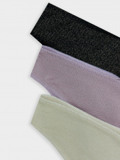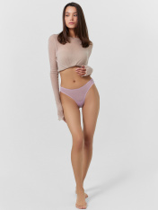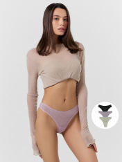 Трусы женские, силуэт бразилиана, из микрофибры с люрексом, со средней посадкой. Передняя и задняя детали цельные. Подкладка ластовицы из кулирной глади, отлетная по переднему краю. _x000D_ Верхний и нижний срезы обработаны эластичной тесьмой 6 мм (жилкатканая WT4-6, девсел 13460W) с изнаночной стороны на оверлоке.