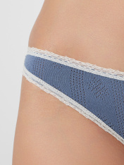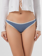 Трусы женские слипы с низкой посадкой из мелкараппортной рибаны._x000D_ Передняя деталь цельная. Ластовица отлетная по переднему срезу, выполнена из кулирного полотна. Нижние и верхний срезы обработаны узким кружевом 15мм на плоскошовной машине. По верхнему срезу с изнаночной стороне эл. тесьма 6мм (жилка wt4-6, девсел 13460w).