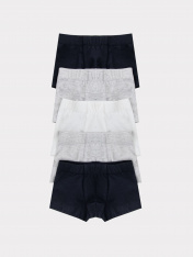 Трусы для мальчиков прилегающего силуэта, без боковых швов. Планка с подкладкой. По верхнему срезу изделия внутрь застрочена эластичная тесьма. Низ изделия обработан швом в подгибку на 2-х игольной плоскошовной машине.