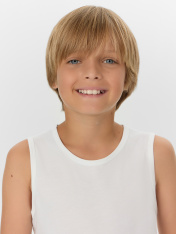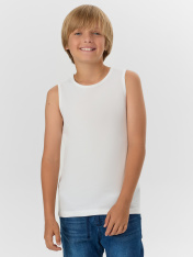Майка полуприлегающего силуэта из хлопковой трикотажной кулирки. Длина до середины бедер. Горловина круглая, окантована мягкой бейкой. Нижний срез обработан плоским швом. Комфортная классика для вашего мальчика!