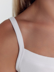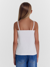 Лаконичная майка на бретелях для девочек. Изготовлена из натурального хлопкового полотна. Силуэт прилегающий, длина до середины бедер. Универсальная и очень практичная майка!