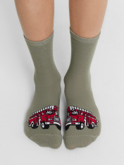 рис.3071 Детские классические носки с рисунком в виде пожарной машины.