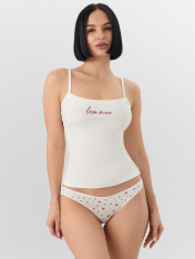Стильный комплект нижнего белья из высококачественного хлопка. Состоит из майки на тонких бретелях прилегающего силуэта длиной до середины бедер и трусов из трикотажного полотна. Легкий, нежный и невероятно удобный комплект майка трусы подходит как нижнее белье для ежедневной носки, также можно использовать как пижамку женскую для сна и отдыха дома. Материал натуральный, отлично тянется и не стесняет движений, в таком комплекте женского белья вы будете чувствовать себя комфортно и уверенно. Если вам наскучили привычнее комплекты и однообразное нательное белье, этот комплект домашний женский вас однозначно порадует своей универсальностью, удобный кроем и комфортной посадкой. Купить набор белья женского недорого можно у нас на сайте и в магазинах Mark Formelle!