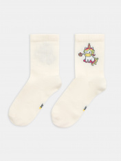 Детские носки из высококачественного хлопка с высоким бортом и рисунком в виде единорога. Натуральные волокна отлично пропускают воздух и впитывают влагу, дарят ощущение комфорта в течение дня. Благодаря небольшому количеству эластана в составе, высокие детские носки удобно сидят и не сползают, хорошо тянутся и легко надеваются. Пятка и мысок дополнительно укреплены для защиты от протирания. Резинка мягко, но надежно удерживает носки, не оставляя на коже следов. В ассортименте Mark Formelle можно выбрать самые разнообразные дизайны и расцветки: однотонные зеленые, желтые, синие или серые детские носки подойдут и для мальчика, и для девочек, найдутся модели в полоску, с оригинальными авторскими рисунками, орнаментами, а также базовые носки белые и черные детские. Маленьким модникам точно понравятся!
