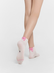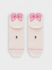 рис.3193 Гладкий детский носок с резинкой, средней высоты и рисунком в виде бантика.