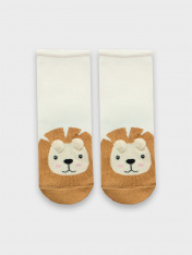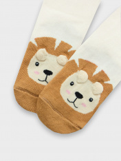 рис.2934 Детские гладкие носки без борта, с рисунком в виде львенка и цветным мыском.