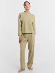 Домашний свитшот для женщин - это удобная и уютная модель, идеально подходящая для создания комфортных аутфитов для дома. Она имеет прямой силуэт и выполнена из селаника - материала, прекрасно сохраняющего тепло, что делает этот свитшот отличным выбором для прохладного сезона, когда особенно хочется тепла и уюта. Материал также устойчив к износу и приятен на ощупь, обеспечивая комфорт при носке. Этот свитшот имеет круглую горловину и длинные рукава со спущенной линией плеча и манжетами. Его можно дополнить подходящим низом из коллекции домашней одежды, создавая гармоничные и стильные образы. Рекомендуем для тех, кто ценит уют и стиль в домашней одежде!
