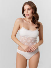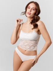 Изящный кружевной топ, который станет великолепным дополнением вашего гардероба! Модель облегающего кроя выполнена из нежного кружева, придающего романтичный вид.Низ изделия обработан швом вподгибку, внутри протянута эластичная тесьма, что обеспечивает идеальную посадку и комфорт при носке. Такой топ идеально подчеркивает вашу фигуру, добавляя нотку утонченности и изысканности. Для создания нежного кружевного комплекта рекомендуем дополнить топ подходящими трусиками из этой же коллекции. Он станет отличным выбором для особых случаев или для создания роскошных домашних образов.