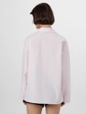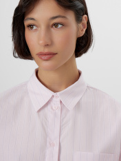 Эта женская рубашка воплощает комфорт и лаконичность. Свободный силуэт позволяет чувствовать себя непринужденно, не жертвуя стилем. Спущенное плечо и длинные рукава добавляют расслабленного шарма, а классический воротник и застежка на пуговицах придают модели нотку строгости. Хлопковая ткань — гарантия мягкости, дышащих свойств и повседневной практичности. Накладной карман — небольшой, но выразительный штрих, придающий рубашке визуальный акцент. Обработка краев делает изделие аккуратным и завершенным, а прямой низ оставляет простор для разных стилистических решений — от классики до кэжуал.