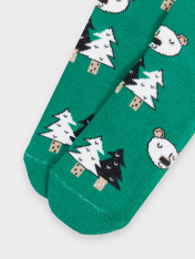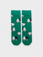 рис.2136 Детский носок с плюшевым следом и рисунком в виде елок и медведей.