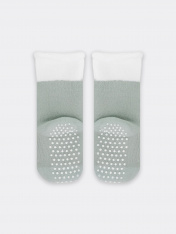 Носки детские махровые из высококачественного хлопка с отворотом и нанесением силикона на стопу. Натуральные волокна отлично пропускают воздух и впитывают влагу, дарят ощущение комфорта в течение дня. Благодаря небольшому количеству эластана в составе, носки удобно сидят на ножке и не сползают, хорошо тянутся и легко надеваются. Пятка и мысок дополнительно укреплены для защиты от протирания. Резинка мягко, но надежно удерживает носки, не оставляя на коже следов. Эти носки точно понравятся вашеймаленькой моднице. Рекомендуем