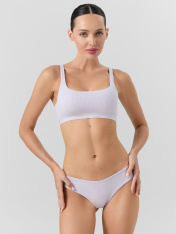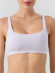Нетривиальное женское бюстье из рибаны, фактура которой придает особый шарм повседневному белью. Мягкие чашки без косточек дарят максимальный комфорт. Бретели в бюстье регулируемые, а чашки – со съемными вкладышами.