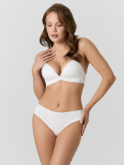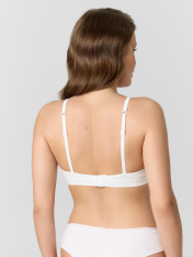 Женский бюстгальтер из трикотажной кулирки сочетает комфорт и надежную поддержку без каркасов. Твердые формованные чашки обеспечивают естественную посадку и удобство, а боковые пластины помогают сохранить форму, создавая красивый силуэт. Регулируемые бретели позволяют легко адаптировать изделие под индивидуальные предпочтения, обеспечивая максимальный комфорт при носке. Двойная застежка на крючки-петли гарантирует надежную фиксацию. Дополните этот бюстгальтер подходящими трусиками, чтобы создать гармоничный комплект, идеально подходящий как для повседневной носки, так и для особых случаев.