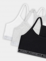 Удобное и функциональное бюстье для девочек. Выполнено из хлопкового трикотажа с небольшим добавлением эластана. Чашки на подкладке, бретели регулируются по длине сзади. Миниатюрный бантик на ластовице делает бюстье максимально милым!
