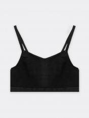 Хлопковое бюстье прилегающего силуэта для девочек. Выполнено из легкой и приятной к телу трикотажной рибаны. Вырез горловины и проймы окантованы эластичной тесьмой. На бретелях есть кольца-регуляторы. По нижнему краю бюстье расположена удобная и стильная жаккардовая тесьма. Идеально!