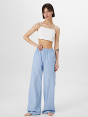 Женские домашние брюки — это комфортная и практичная модель, идеально подходящая для создания уюта и расслабленности дома. Свободный силуэт обеспечивает легкость и свободу движений, что особенно важно для домашней одежды. Эластичный пояс гарантируетудобную посадку, а планка спереди с имитацией застежки добавляет дизайну стильность и интересный акцент. Боковые карманы делают модель еще более функциональной, предоставляя место для хранения мелочей. Нижние срезы брюк обработаны швом вподгибку, что подчеркивает качественное исполнение и долговечность изделия. Материал изделия — натуральный хлопок, который отличается мягкостью, воздухопроницаемостью и приятностью на ощупь. Хлопок идеально подходит для домашней одежды благодаря своей способности обеспечивать комфорт даже при длительной носке. Эти брюки станут отличным выбором для отдыха дома, сочетая в себе практичность, стиль и естественный комфорт. Рекомендуем для вашего домашнего гардероба!