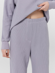 Домашние брюки из стопроцентного хлопка созданы для минут абсолютного отдыха. Модель прямого свободного силуэта со средней посадкой обеспечивает неограниченную свободу движений во время отдыха или домашних дел. Широкий пояс со встроенной эластичной лентой мягко облегает талию, обеспечивая комфорт без давления.<br>_x000D_ <br>_x000D_ Боковые швы аккуратно подчеркивают силуэт, сохраняя его лаконичность. Натуральный хлопок обеспечивает идеальную воздухопроницаемость, даря коже ощущение свежести и невесомой мягкости._x000D_ Аккуратная обработка низа брюк обеспечивает опрятный вид и сохранение формы после множества стирок. Нежный розовый цвет добавляет образу теплоты и уюта, делая эти брюки отличным выбором для спокойных вечеров, утреннего отдыха или занятий любимыми делами в стенах дома. <br>_x000D_ <br>_x000D_ Брюки сочетают в себе практичность, качество и эстетику повседневного комфорта._x000D_