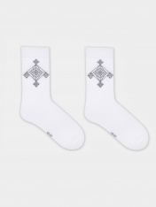 рис.3238 Носки высокие, классические с тонким, гладким бортом с рисунком в виде беларускага павука.