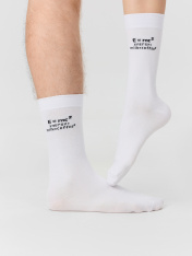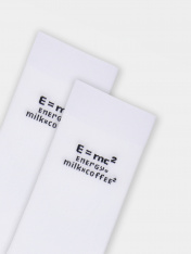 Универсальные высокие носки — это лаконичное сочетание классического дизайна и интеллектуального акцента. Модель выполнена из мягкого, дышащего хлопка, который обеспечивает комфорт и приятные ощущения на протяжении всего дня. Эластичный гладкий бортнадежно фиксирует изделие, не сдавливая кожу и не создавая следов, а анатомическая посадка делает носки удобными в носке — будь то дома, на прогулке или в офисе. Главный акцент — рисунок в виде формулы энергии E=mc?, который добавляет изюминку и станет отличным способом выразить интерес к науке, креативный стиль или даже чуточку иронии. Эта деталь превращает базовую модель в яркий элемент образа, который не останется незамеченным. Носки легко сочетаются с кедами, ботинками, классической или спортивной обувью, дополняя индивидуальность в любом стиле — от повседневного до концептуального.