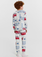 Комплект для мальчиков состоит из джемпера с длинным рукавом и брюк. Изготовлена модель из высококачественного хлопка, что обеспечит комфорт как в летний, так и в зимний период. Пижама для подростка мальчика отлично подходит для отдыха в комфортнойдомашней обстановке и сна. Пижама детская — отличный подарок ребенку на любой праздник. Обязательно понравится ребенку, ведь она выполнена в трендовых цветах и украшена милыми и оригинальными рисунками. Широкий размерный и цветовой ряд. Рекомендуем!