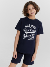 Универсальная пижама для мальчиков из высококачественного хлопка. Состоит из футболки с коротким рукавом и шорт. Футболка свободная, с круглой горловиной. Шорты длиной до колен, с эластичной тесьмой в поясе. Изготовлена пижама для мальчика из высококачественного натурального материала, что обеспечивает комфорт как в летний, так и в зимний период. Материал отлично тянется, хорошо впитывает влагу и быстро сохнет, не сковывает движений и не создает парникового эффекта. Отличный вариант для каждодневной носки. Пижама детская для подростка мальчика отлично подходит для отдыха в комфортной домашней обстановке и сна. В линейке много интересных расцветок, есть красивые варианты с принтами. Если вы устали от простых и не замысловатых моделей и хотите разнообразить гардероб вашего ребенка, этот вариант порадует. Такая пижама понравится всем мальчикам и подросткам, ведь она выполнена в ярких цветах и украшена рисунками. Купить пижаму детскую недорого можно у нас на сайте и в магазинах Mark Formelle!