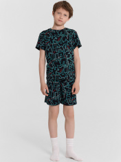 Домашний комплект для мальчиков — идеальное сочетание комфорта и практичного дизайна. Футболка прямого силуэта с короткими рукавами и круглой горловиной обеспечивает удобную посадку и свободу движений. Легкий крой делает ее комфортной для сна и повседневного отдыха. Шорты длиной до колен оснащены эластичным поясом с регулируемым шнурком, что позволяет индивидуально подстраивать посадку, обеспечивая дополнительный комфорт. Выполненный из 100% хлопка, комплект мягкий, дышащий и приятный к коже, создавая максимальное удобство. Этот вариант отлично подойдет мальчикам, которые ценят удобство, качество и стиль, делая отдых и сон еще более приятным!_x000D_