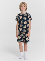 Домашний комплект для мальчиков – это сочетание практичности, комфорта и стильного дизайна! Футболка прямого силуэта с круглой горловиной и короткими рукавами обеспечивает свободу движений и комфорт во время носки. Благодаря 100% натуральному хлопку, изделие мягкое, гипоаллергенное и приятное к телу, идеально подходящее для сна и отдыха. Шорты длиной до колен дополнены эластичным поясом с регулируемым шнурком, что позволяет подобрать оптимальную посадку для максимального удобства. Эластичная тесьма внутри гарантирует комфорт и надежность при носке, а широкий размерный и цветовой ряд делает комплект доступным для каждого маленького модника. Такая пижама станет отличным выбором для дома, обеспечивая уют и стиль каждый день!