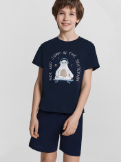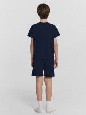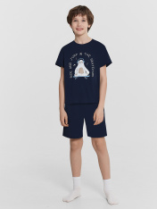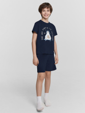 Домашний комплект для мальчиков – это сочетание практичности, комфорта и стильного дизайна! Футболка прямого силуэта с круглой горловиной и короткими рукавами обеспечивает свободу движений и комфорт во время носки. Благодаря 100% натуральному хлопку, изделие мягкое, гипоаллергенное и приятное к телу, идеально подходящее для сна и отдыха. Шорты длиной до колен дополнены эластичным поясом с регулируемым шнурком, что позволяет подобрать оптимальную посадку для максимального удобства. Эластичная тесьма внутри гарантирует комфорт и надежность при носке, а широкий размерный и цветовой ряд делает комплект доступным для каждого маленького модника. Такая пижама станет отличным выбором для дома, обеспечивая уют и стиль каждый день!