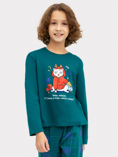 Повседневный комплект для мальчиков, состоит из джемпера с длинными рукавами и брюк. Изготовлен из высококачественного натурального хлопка, что обеспечивает комфорт как в летний, так и в зимний период. Материал хорошо тянется, быстро впитывает влагуи легко сохнет, не сковывает движений и не создает парникового эффекта. Отличный вариант для каждодневной носки. Комплет пижамный детский для подростка мальчика идеально подходит для отдыха в комфортной домашней обстановке и сна. В линейке много интересных расцветок, есть варианты с принтами. Рекомендуем!