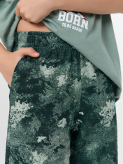 Этот домашний комплект для мальчиков — удобный и практичный выбор для отдыха и сна. Футболка свободного силуэта обеспечивает комфортную посадку. Круглая горловина с обтачкой из рибаны добавляет мягкости и эластичности, обеспечивая удобство при носке. Свободные рукава и слегка спущенная линия плеча создают расслабленный силуэт, а обработка низа рукавов и футболки швом в подгибку делает изделие аккуратным и долговечным. Шорты ниже колена свободного силуэта и с высокой посадкой на талии обеспечивают максимальное удобство, создавая ощущение свободы движений. Эластичный пояс мягко фиксирует изделие, а обработка низа шорт швом в подгибку делает модель надежной и устойчивой к износу. Этот комплект из натурального хлопка идеально подходит для домашних образов, сочетая комфорт, практичность и стиль!