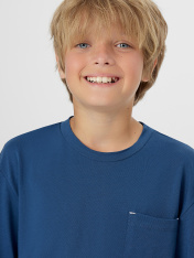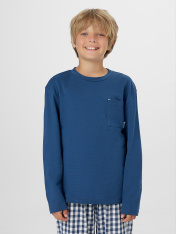 Комплект для мальчиков состоит из джемпера из кулирки (Sj-001.01.140) и текстильных штанов (Tco-049.01.110)._x000D_ Горловина круглой формы с притачной обтачкой из основного полотна. Рукава длинные втачные. Перед и спинка цельнокроеные. Карман настрочной с отделочными закрепками._x000D_ Низ джемпера и рукавов обработан швом вподгибку._x000D_ Пояс цельнокроенный с эластичной тесьмой 30 мм внутри.