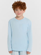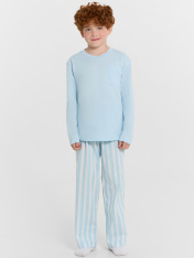 Комплект для мальчиков состоит из джемпера из кулирки (Sj-001.01.140) и текстильных штанов (Tco-049.01.110)._x000D_ Горловина круглой формы с притачной обтачкой из основного полотна. Рукава длинные втачные. Перед и спинка цельнокроеные. Карман настрочной с отделочными закрепками._x000D_ Низ джемпера и рукавов обработан швом вподгибку._x000D_ Пояс цельнокроенный с эластичной тесьмой 30 мм внутри.